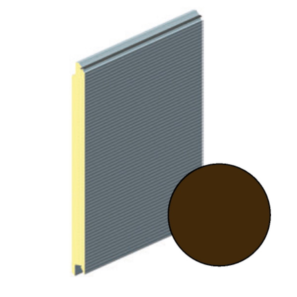 Используется для секционных ворот ALUTECH Наружная сторона: структура поверхности woodgrainс рисунком «микроволна», цвет RAL8014